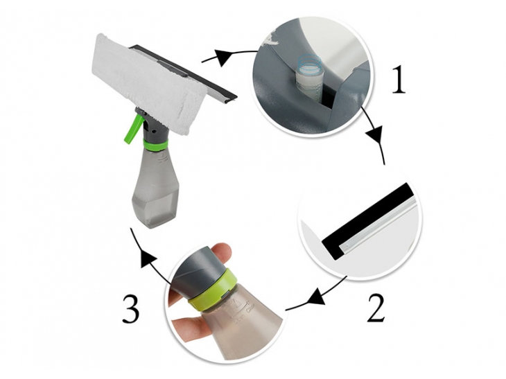 Ovaj fantastični brisač staklenih površina je najbolja stvar koju ste ikad probali u ove svrhe. Sa njim se nećete ni malo mučiti prilikom do sada najomraženijeg posla – pranja prozora. Šta više, biće vam zabavno! Ovaj efikasni brisač stakla se sastoji iz tri dela: bočice sa pumpicom za vodu ili za sredstvo za čišćenje stakla, plišanog dela brisača kojim ćete detaljnije i lakše nasapunjati staklo i gume za skidanje viška tečnosti sa samog stakla.