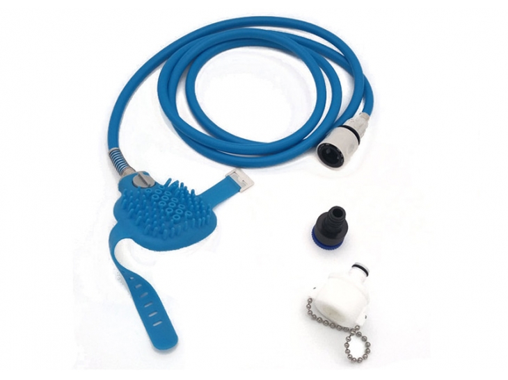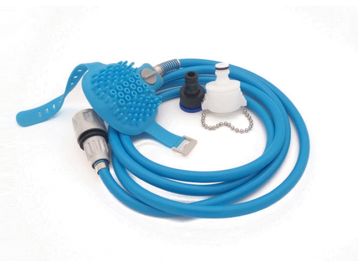 Aquapaw je specijalno crevo za kupanje ljubimaca koje na vrhu umesto obične prskalice ima prskalicu sa silikonskim kuglicama koja se fiksira za vaš dlan. Fiksira se kaišem koji može da se zategne po želji i potrebi. Dakle, neće vam spadati sa ruke niti vas stezati. Prskalica je dvostruko korisna. Naime, kroz nju, naravno, izlazi voda, ali zbog silikonskih kuglica koje ima po sebi je super praktična za sapunjanje psa prilikom tuširanja. Zahvaljujući njima ga je ne samo lakše nasapunjati, već i odstraniti suvišnu dlaku koja bi inače završila na tepihu, a pas ima osećaj blage masaže koja mu podstiče cirkulaciju i sjaj dlake.