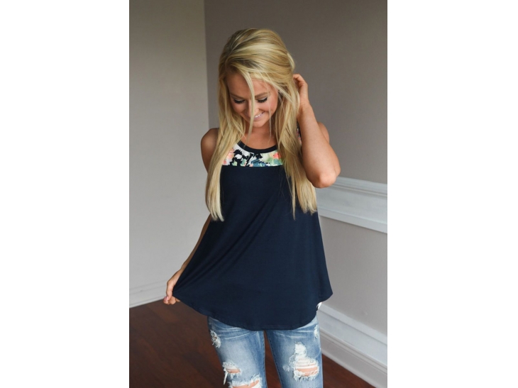 Prava letnja majica u kojoj će vam biti prijatno i udobno kada god, gde god i sa čime god da je nosite! Kao što se može videti na slici, ona je napred jednobojna, a gornji deo je šaren, pun cvetića. Istog takvog dezena su i cela leđa, što je čini vrlo neobičnom i zanimljvom. Malo je duža (ne predugačka), pa nećete imati nikakvih problema ako ne volite da vam se vidi stomak čak ni kada podignete ruke da npr. vežete kosu.
