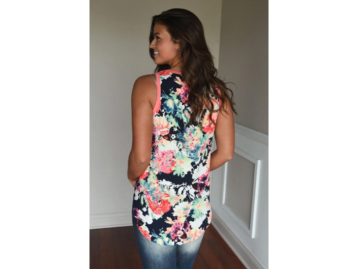 Kako leti češće vezujete kosu s obzirom na vrućinu, zanimljiva cvetna leđa će doći do izražaja ako ih potpuno otkrijete. Praktična strana: s obzirom na cvetove jarkih boja, na majici se neće videti mokri tragovi ako se tokom „kuvanja“ u autu, autobusu ili tokom hodanja oznojite.