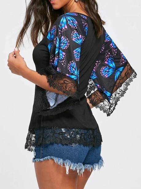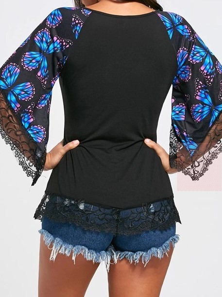 Neponovljivo zabavna, lepršava i originalna majica sa modernim širokim rukavima, leptirićima i čipkom! Kakav sjajan spoj!