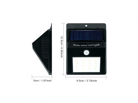 Predviđen je za spoljašnju upotrebu. Reflektor radi na solarnu energiju, pa mu nisu potrebne baterije niti struja. Senzor pokreta detektuje kretanje do 15 metara i automaski svetli kada se neko približi.