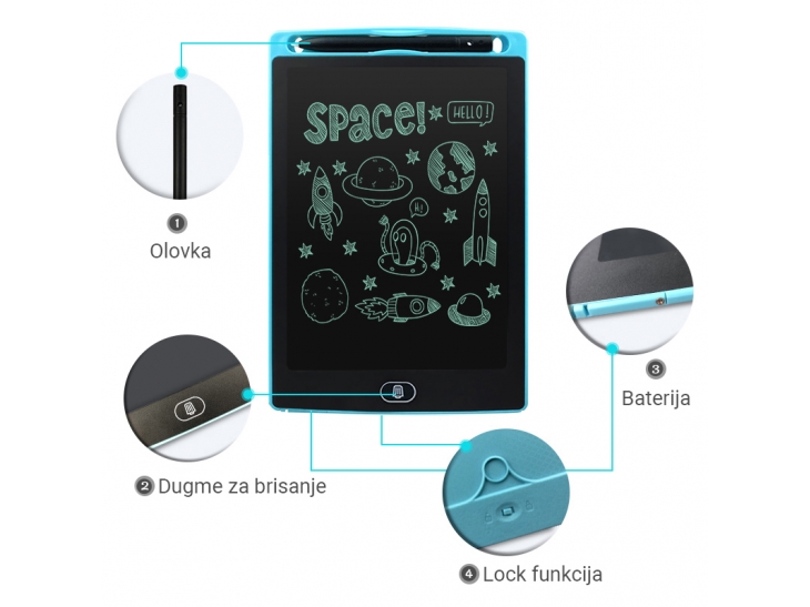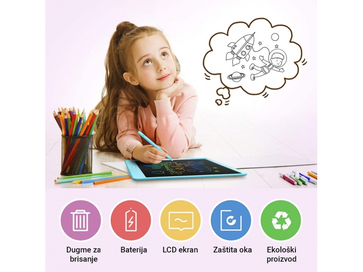 Tabla na kojoj deca mogu neogranično da crtaju i pišu, iznova i iznova. Olovka se ne troši, a sve što je nacrtano na tabli se može izbrisati jednim klikom na dugmence sa kanticom, a zatim ponovo po njoj crtati.