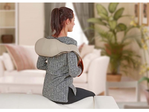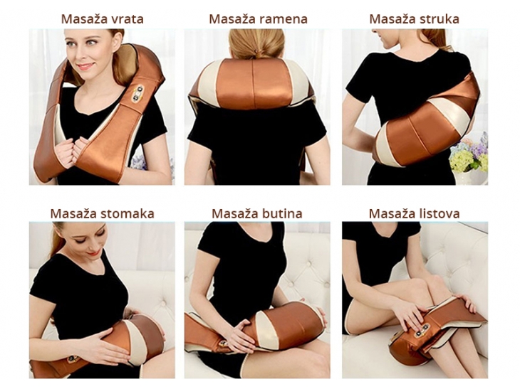 Ovaj genijalni masažer je odličan za masiranje vrata, ramena i leđa. Istovremeno vibrira, kuglice u njemu se rotiraju i ima infracrveno svetlo zahvaljujući kojem greje delove koji se masiraju. Masaža sa njim nije ni malo agresivna, već prijatna i opuštajuća, a pritisak je ipak dovoljno jak da eliminiše bolove koji vas muče.