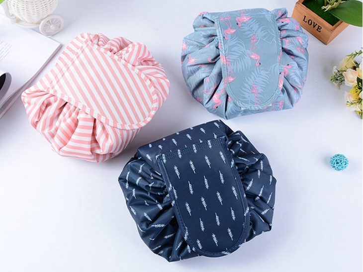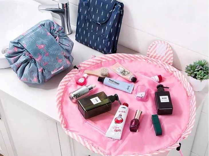 Kada se rasklopi, neseser je prečnika je 52cm, a sklapa se jednostavnim povlačenjem učkura. Sav sadržaj se zatvori, preklopite ga vrhom koji se lepi čičak trakom i bezbrižno spakujete u torbu. Ukoliko imate potrebu da pronađete nešto sa vrha, samo lagano povučete učkur, neseser će se otvoriti i sav sadržaj će vam biti pregledan.